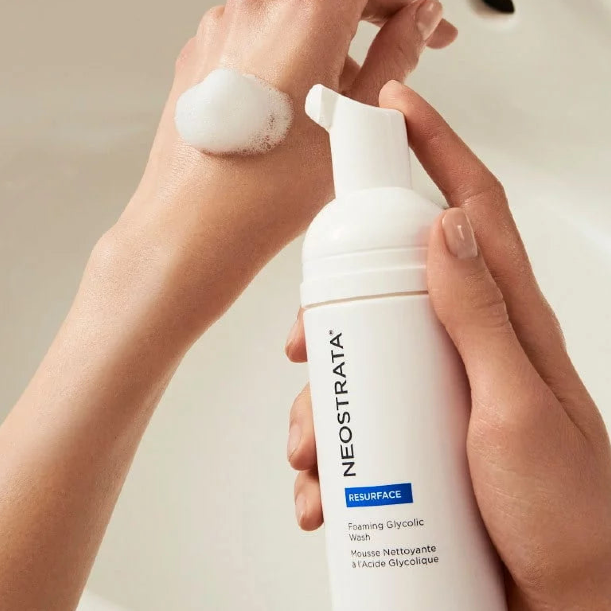 Limpiador anti aging en espuma. Mejora la claridad de la piel. Con sistema de liberación inteligente para aprovechar él los beneficios de los ácidos glicolicos y L-bionicos, y minimizar la irritación de la piel.