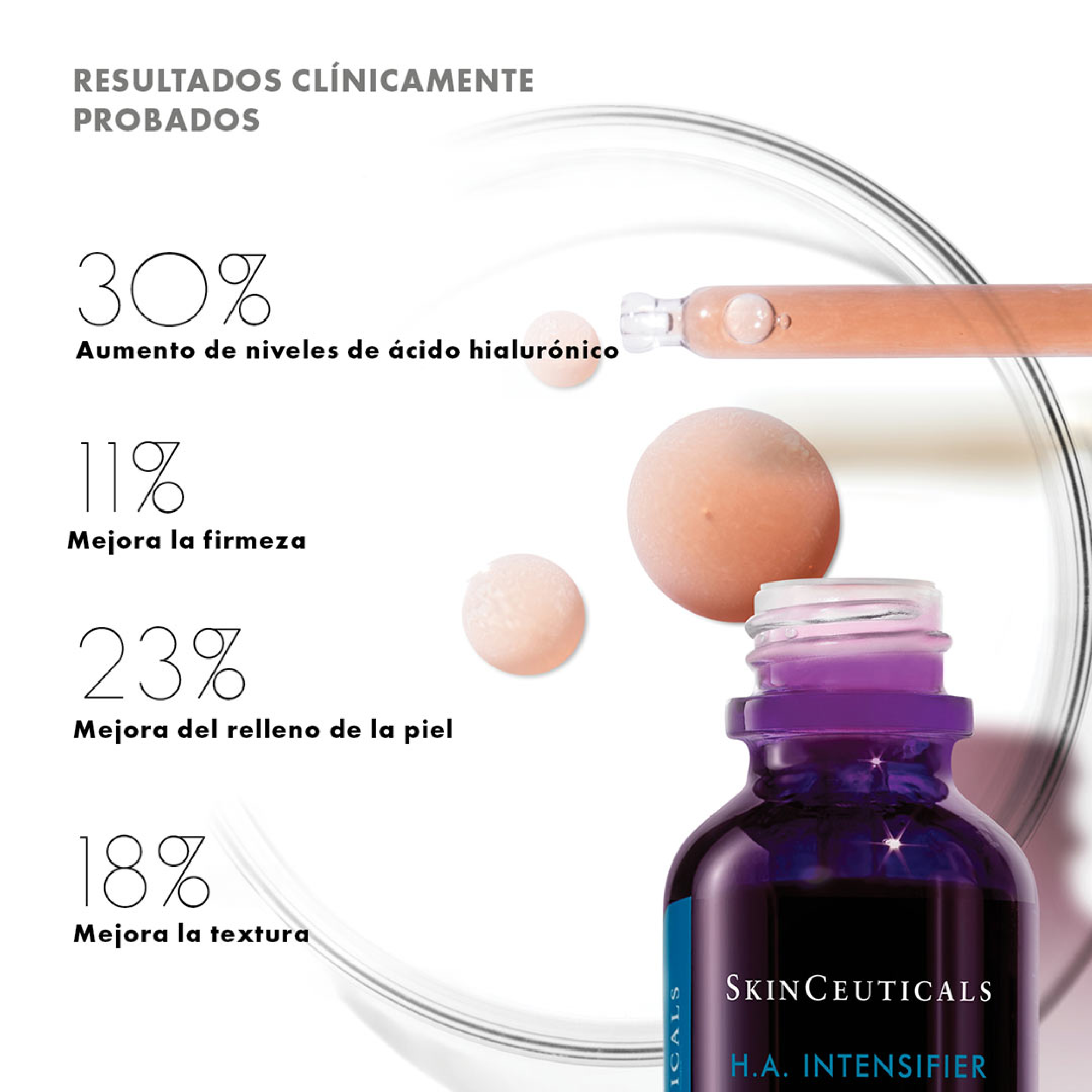Hyaluronic Acid Intensifier es un sérum corrector con múltiples beneficios y eficacia probada que aumenta los niveles de ácido hialurónico de la piel hasta un 30%. Esta exclusiva formulación contiene una alta concentración de ácido hialurónico puro en tres formulaciones, proxylane™ y extractos naturales de raíz de regaliz y de arroz púrpura, ayudando a mejorar su volumen, firmeza y suavidad, y aportando una hidratación duradera. Reduce la apariencia de los surcos nasolabiales, las líneas de marioneta y las patas de gallo para una piel más tersa firme y suave.